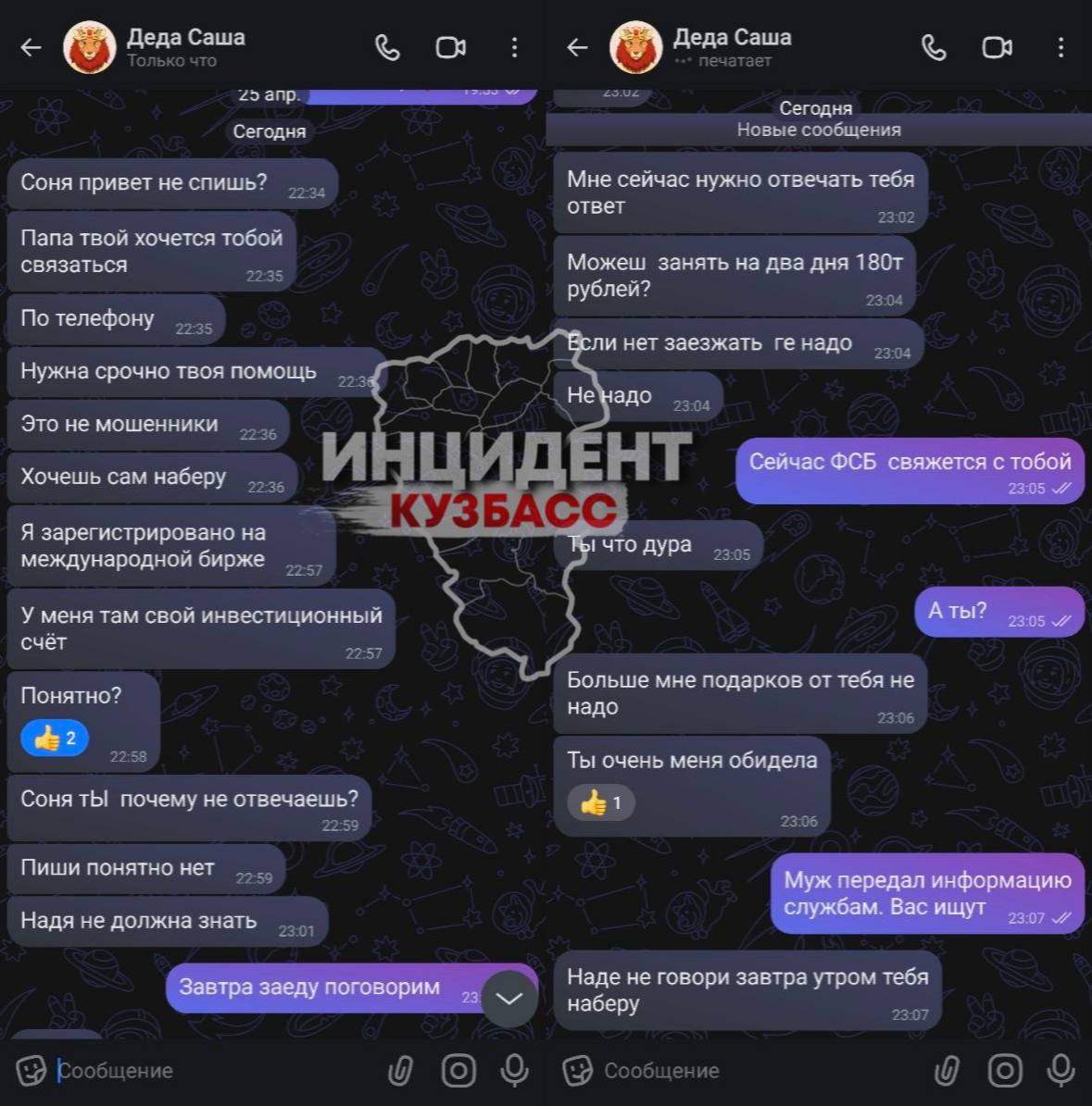 По телефону позвонила папе и жене, их голоса, имена родственников совпадают, подготовились, задавала вопросы. Но говор, конечно, и обращение к дочке не папино!) Так что идите вы..... А других хочу предостеречь...