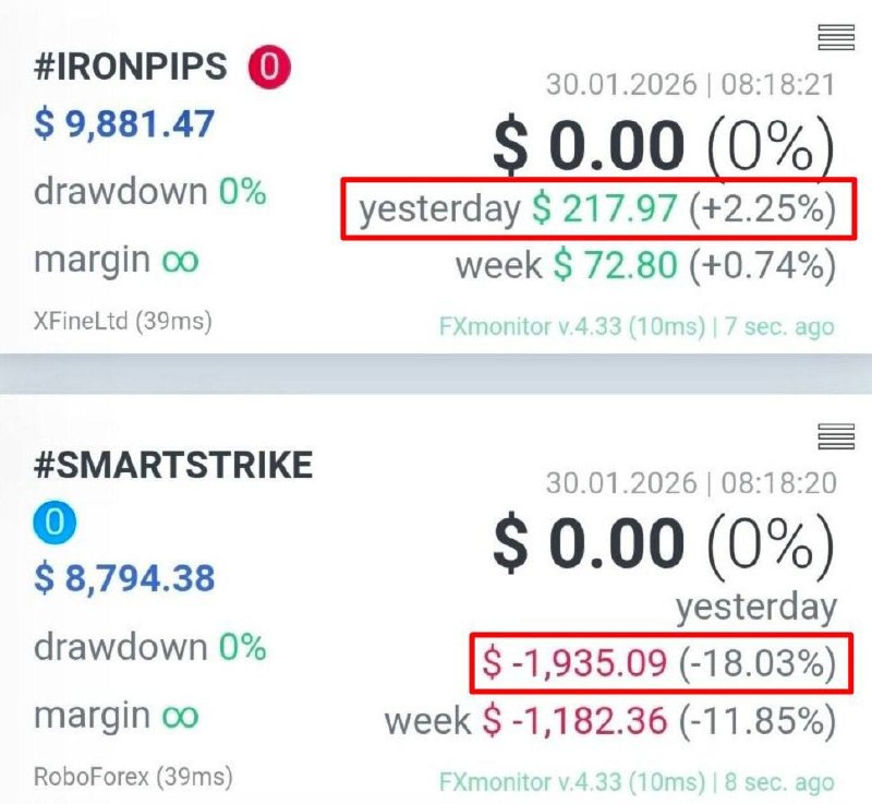 It is important to properly understand the SmartStrike result. At first glance, an 18% loss may look alarming, but it occurred under extremely volatile market conditions. Yesterday, gold prices dropped sharply, triggering massive liquidations — millions of traders and billions of dollars were wiped out across the market.