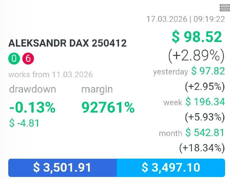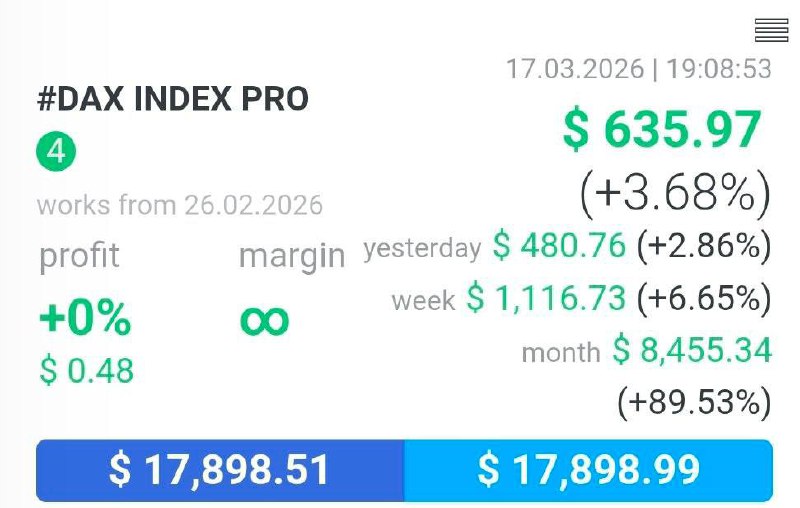 🚀$917.35 last night and more than 70% combined in 2 weeks through our DAX system