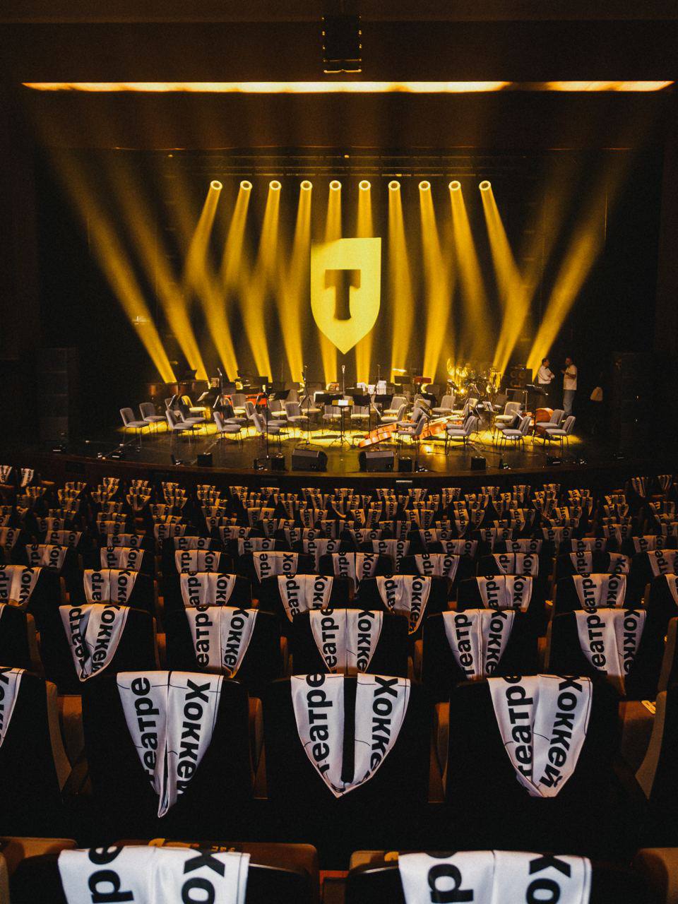 Вау, Трактор x Т-Банк провели первый в стране просмотр хоккейного матча прямо в театре — были оркестр, художники, живые чтения Пушкина и Есенина, перфомансы и даже вальс с талисманом Белым Медведем.