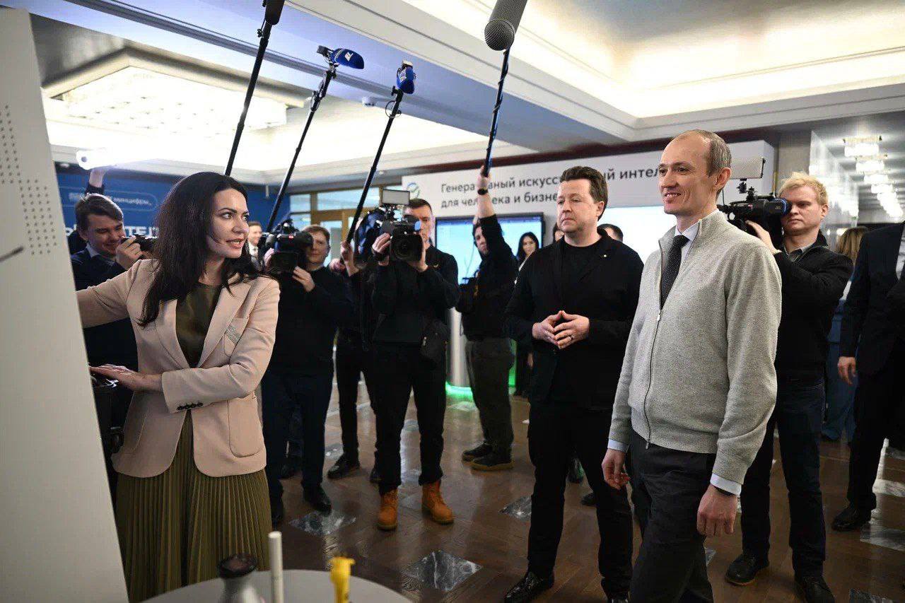 Сотрудникам госаппарата представили перспективные ИИ-решения. Последние разработки Сбера руководитель блока «Технологическое развитие» банка Андрей Белевцев продемонстрировал заместителю Председателя Правительства Дмитрию Григоренко. В экспозиции представили антропоморфного робота Грина, инновационный банкомат, ИИ-помощника ГигаЧат, целый набор продуктов и решений в области медицины, образования, разработки.