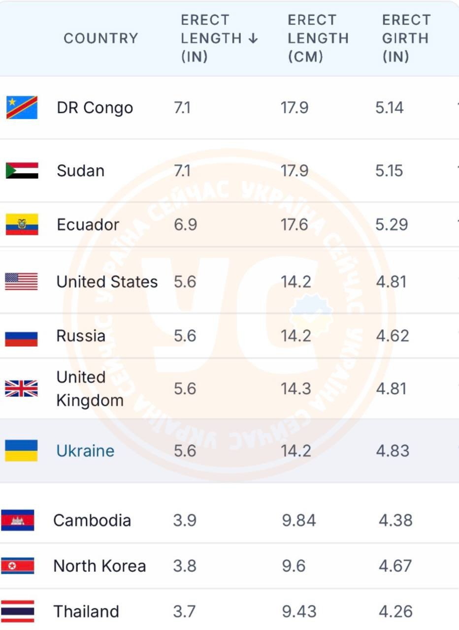 ‼ Середній розмір пенісів українців — 14,2 см, — дані World Population Review станом на початок 2026 року