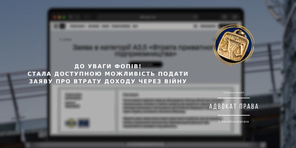 ❗️❗️❗️ ДО УВАГИ ФОПів! СТАЛА ДОСТУПНОЮ МОЖЛИВІСТЬ ПОДАТИ ЗАЯВУ ПРО ВТРАТУ ДОХОДУ ЧЕРЕЗ ВІЙНУ