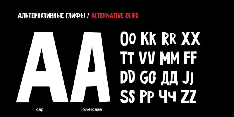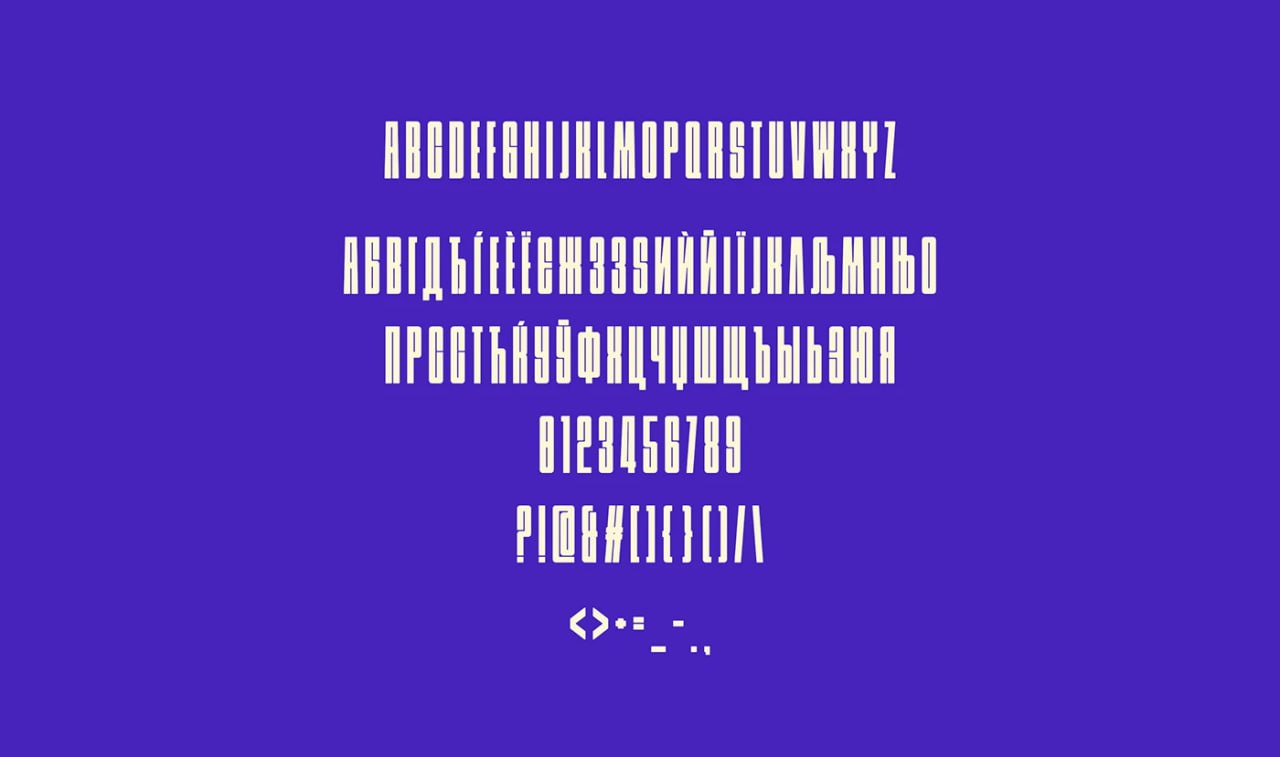 Жирный вытянутый шрифт, который отлично подойдет для обложек и постеров. Есть поддержка кириллицы и латиницы в верхнем регистре, цифры и основные спец. символы тоже есть. Можно бесплатно использовать в личных и коммерческих целях.