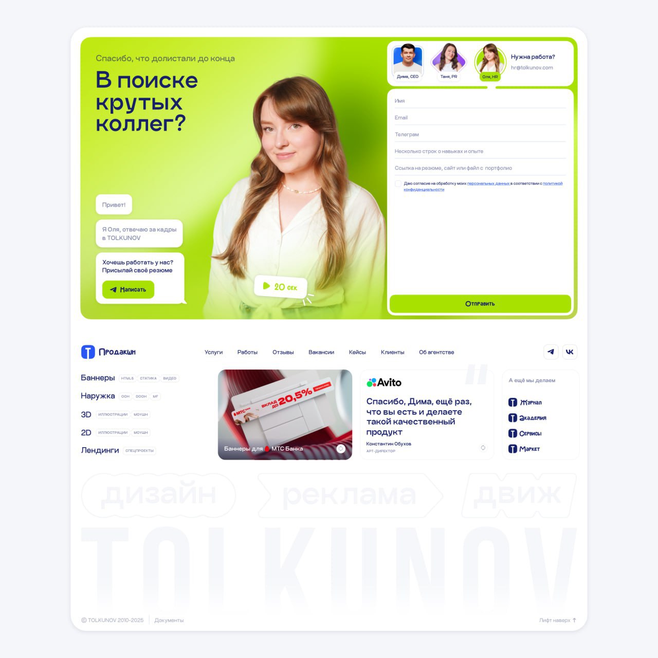 — формы с видео для знакомства с фаундером, PR и HR агентства