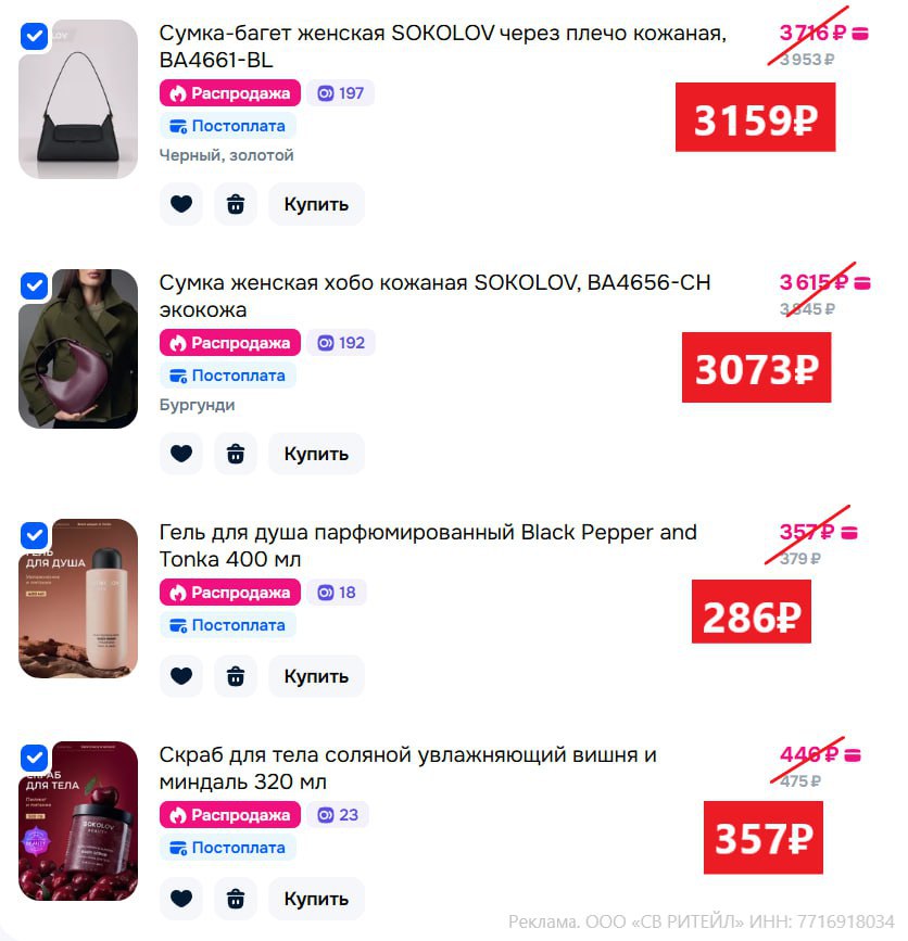 ❌ Не работают в магазинах Самокат, Пятерочка, Перекресток, Чижик, Gamerilla, на опцию самовывоз и в городах Ишим и Новоалтайск