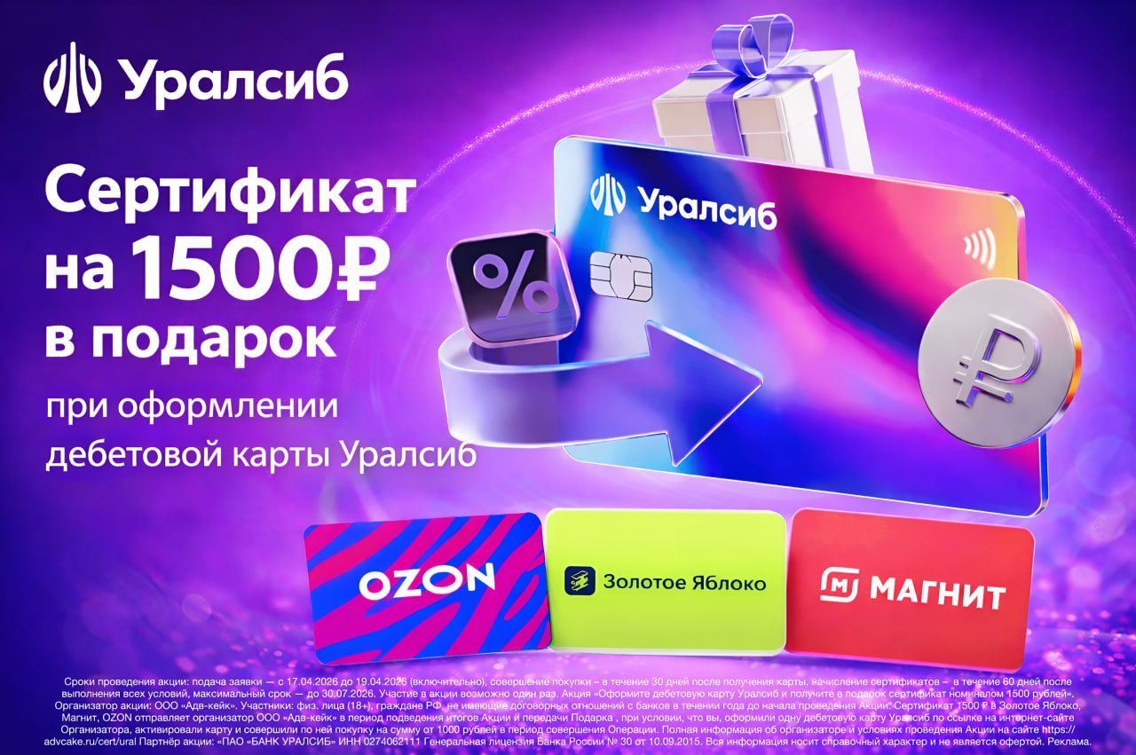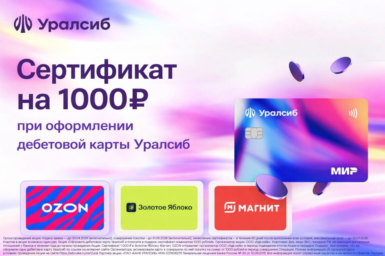💳 Сертификат придет вам в СМС в течение 60 дней после выполнения всех условий. Если вы не получили сертификат по истечении этого срока, обратитесь в службу поддержки организатора по почте: support@advcake.com. Предложение действует для новых клиентов и тех, у кого карты были закрыты более года назад
