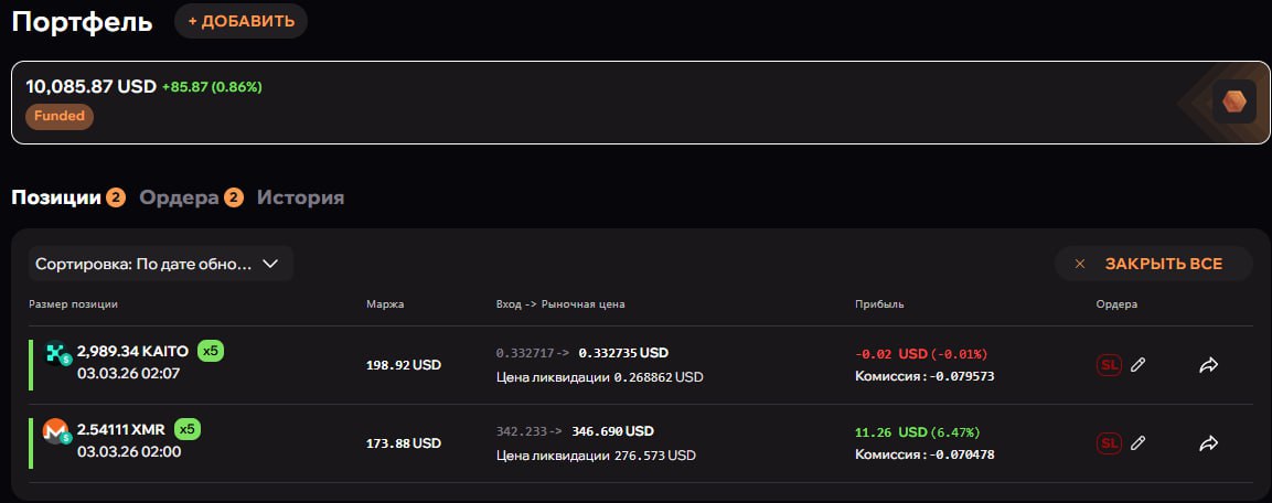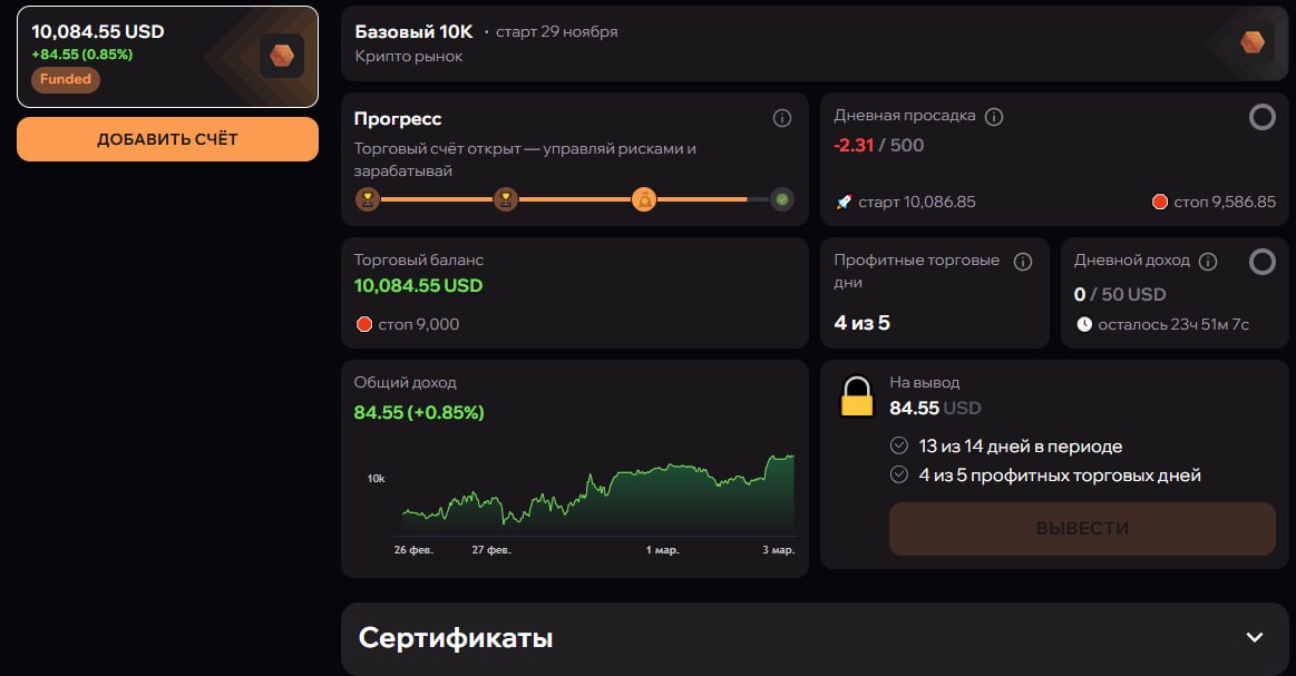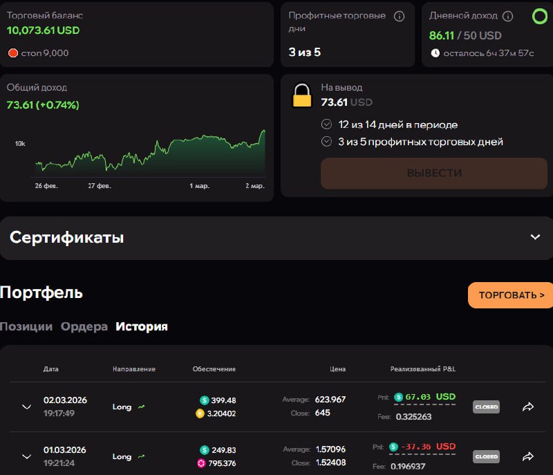 3 из 5 профитных торговых дней (после ночи будет 4)