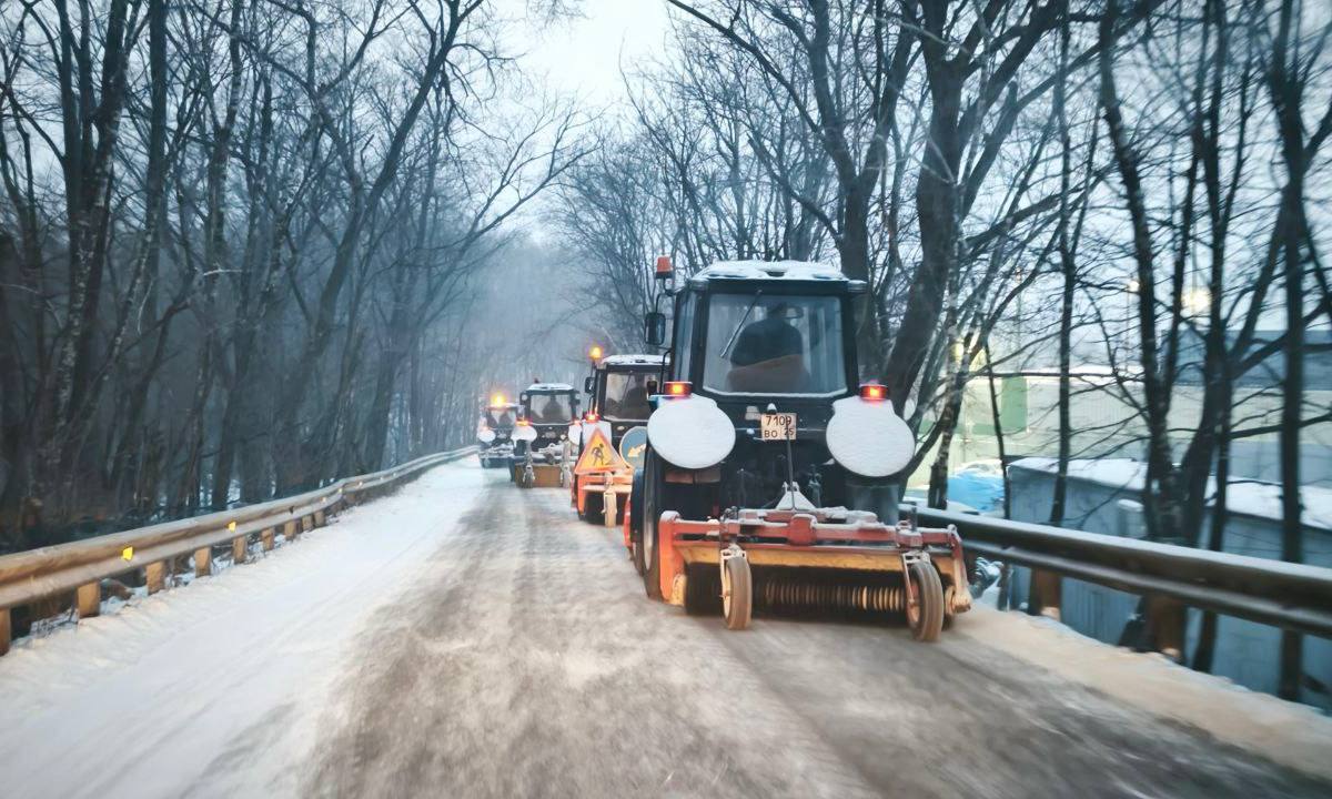 На улицах города работает 164 единицы спецтехники: пескоразбрасывающие машины, тракторы с щетками и отвалами, погрузчики, самосвалы и дежурные машины.
