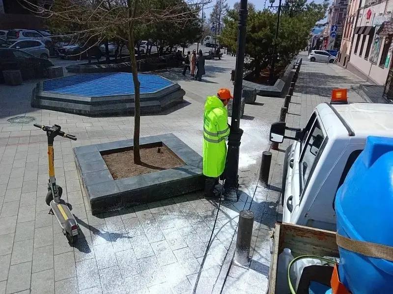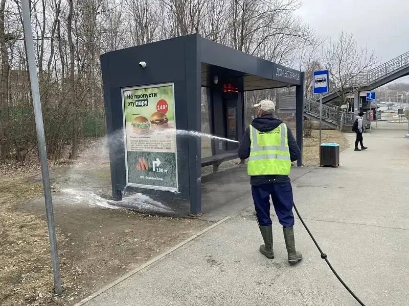 🔹Также рабочие «СГТ» продолжают мыть тротуары и наводить порядок на автобусных остановках.