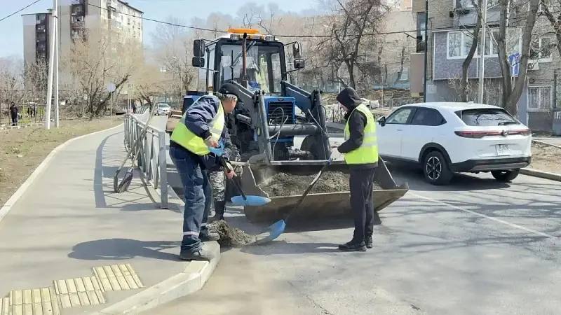 🔹На прошлой неделе бригады городской службы провели уборку дорог на Университетском проспекте, Анны Щетининой, Стрелковой, Героев Хасана, Сафонова, Днепровской, 40 лет ВЛКСМ, Адмирала Фокина, Океанском и Партизанском проспектах, Коммунаров, Тобольской, Постышева, Фирсова, Адмирала Горшкова и других улицах.