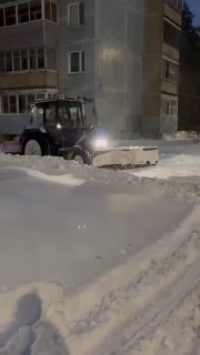 Работы по очистке продолжаются. Также проводим обработку дорог и тротуаров противогололёдными материалами.