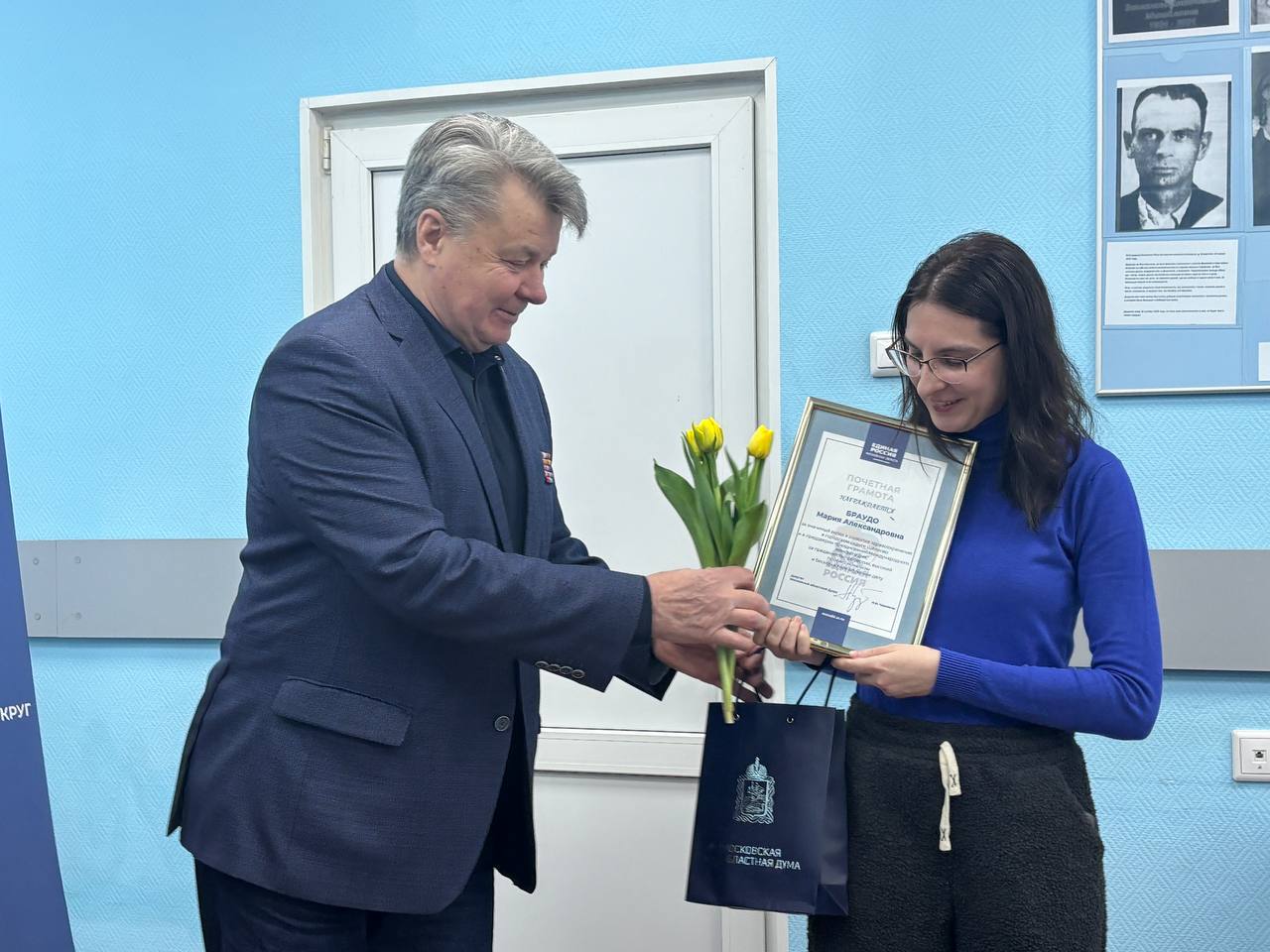 В преддверии Международного женского дня медучреждение посетил депутат Мособлдумы Николай Черкасов. Он поблагодарил женщин-медиков за их труд, а также вручил им почётные грамоты, цветы и подарки.