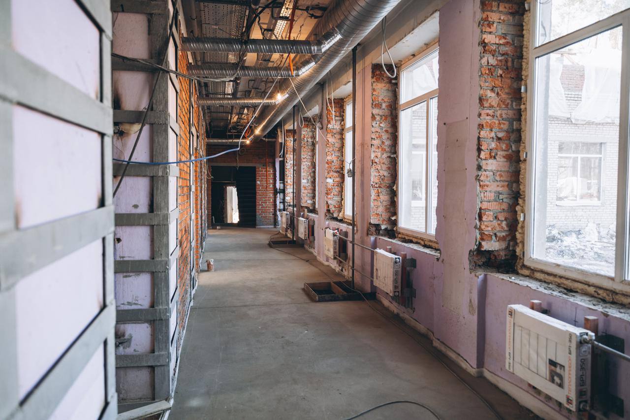 По школе: идём с опережением графика. Завершены основные демонтажные этапы, продолжаются фасадные и кровельные работы, монтаж инженерных систем. В рамках капремонта не только обновим здание, но и улучшим функционал — появятся дополнительные помещения, будет модернизирована система питания, обновятся учебные пространства. Важно, что подрядчик дополнительно усилил конструкцию здания.