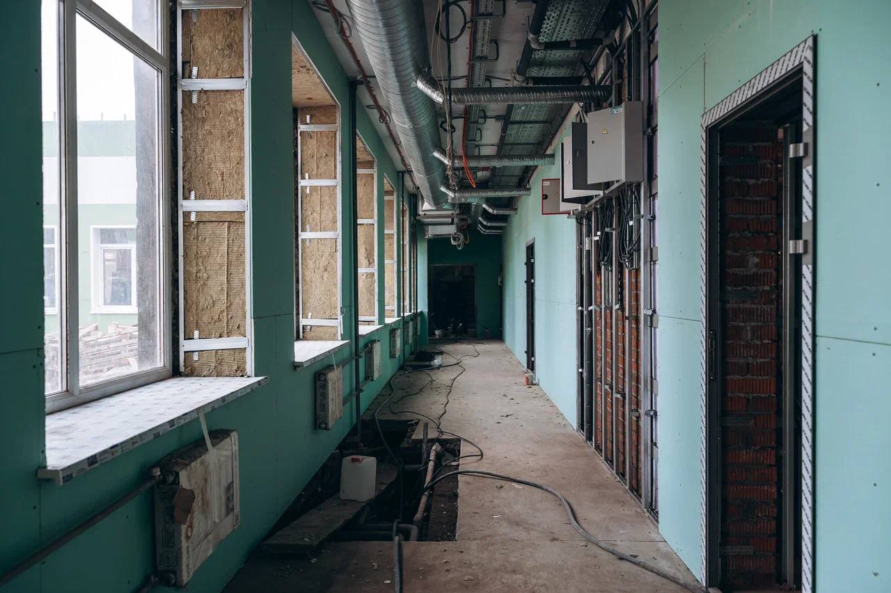 🏊♂️ Также продолжаем строить в Монино ФОК с бассейном на месте старого здания. Готовность — около 45%. Комплекс откроем до конца года. Здесь появятся бассейн на 6 дорожек, зал для «сухого плавания». Он станет базой школы олимпийского резерва и будет открыт для жителей, включая участников «Активного долголетия».