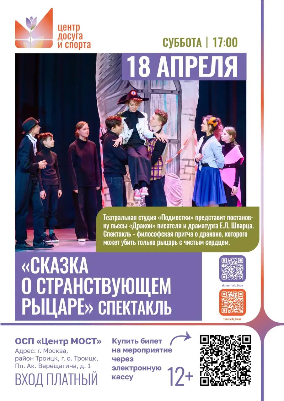 Приглашаем на спектакль «Сказка о странствующем рыцаре»! 💫🎭