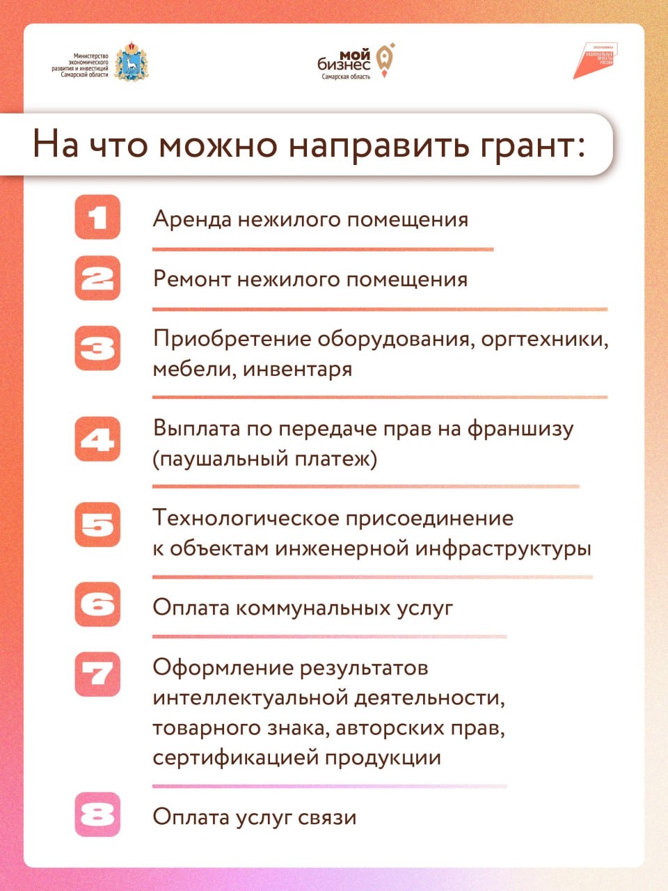 На что можно потратить грант - собрали в карточках.