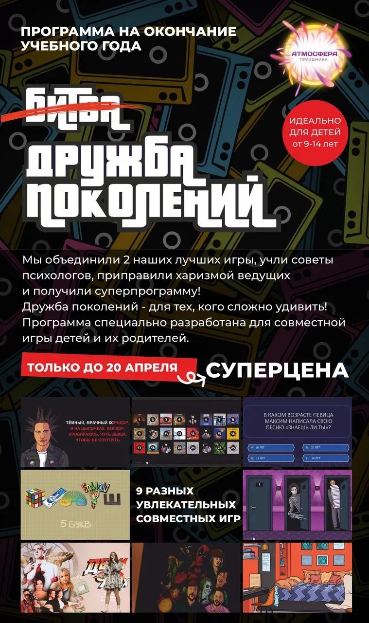 Мы объединили 2 наших лучших игры, учли советы психологов, приправили харизмой ведущих и получили суперпрограмму на окончание учебного года! 🥳🎉