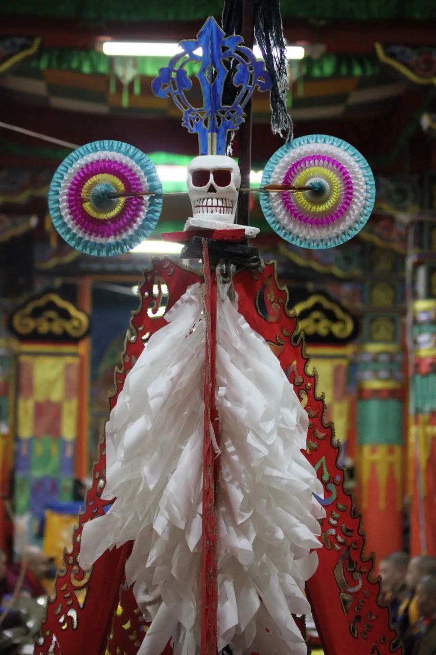 Для совершения ритуала ламы специально изготовили символический «соор»: высокую пирамиду, венчающуюся изображением черепа и похожую формой на остриё стрелы. Читались специальные молитвы и мантры, способствующие очищению присутствующих.