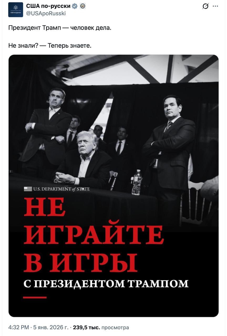 Собственно, вчера он это и продемонстрировал. Есть странная история - вроде, Венесуэла уже передала США какие-то, не то, 30, не то, даже и 50 млн. баррелей нефти. Как передала, где передала - совершенно не ясно.