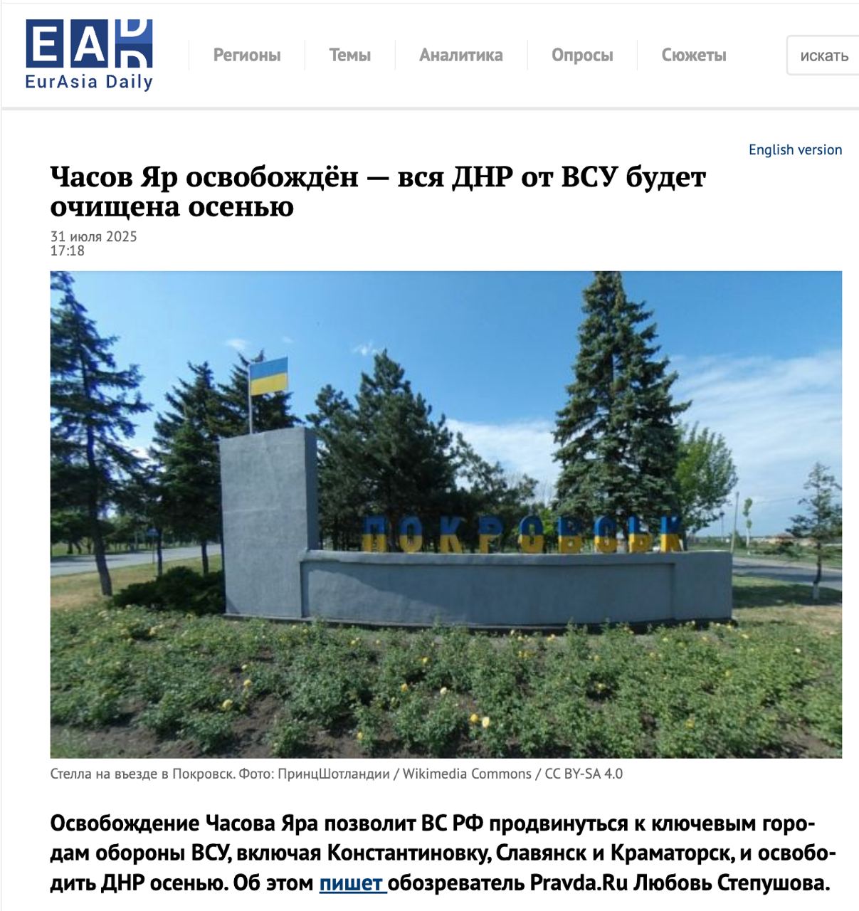 Госагентства РФ «аннулировали» новости о «полном контроле» над южной частью Мирнограда