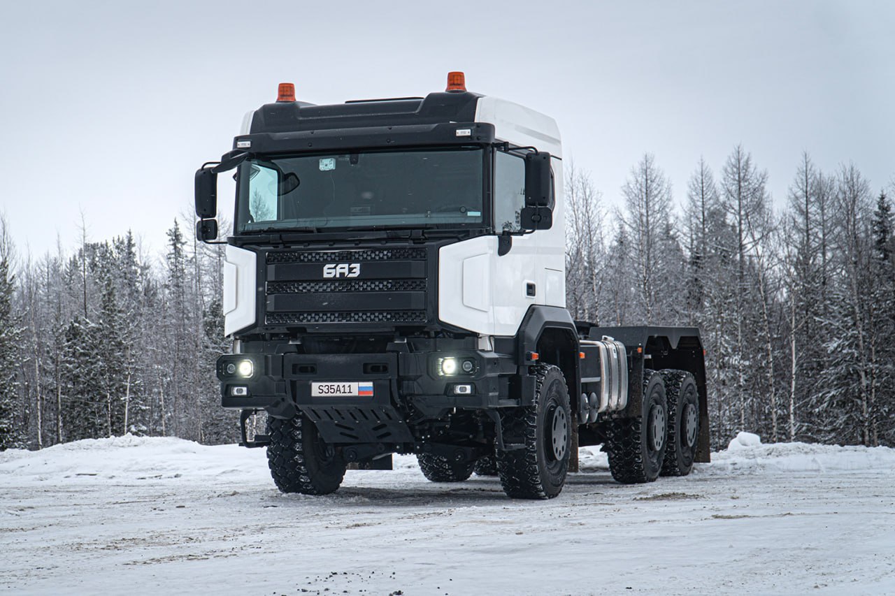 Молодая петербургская фирма «Романов», под занавес 2025 года запустившая производство тяжёлых грузовиков марки БАЗ, поделилась с телеканалом «Авто Плюс» любопытным репортажем из Заполярья, где подразделение «Газпром добыча Ямбург» тестирует седельный тягач БАЗ-S34A10.