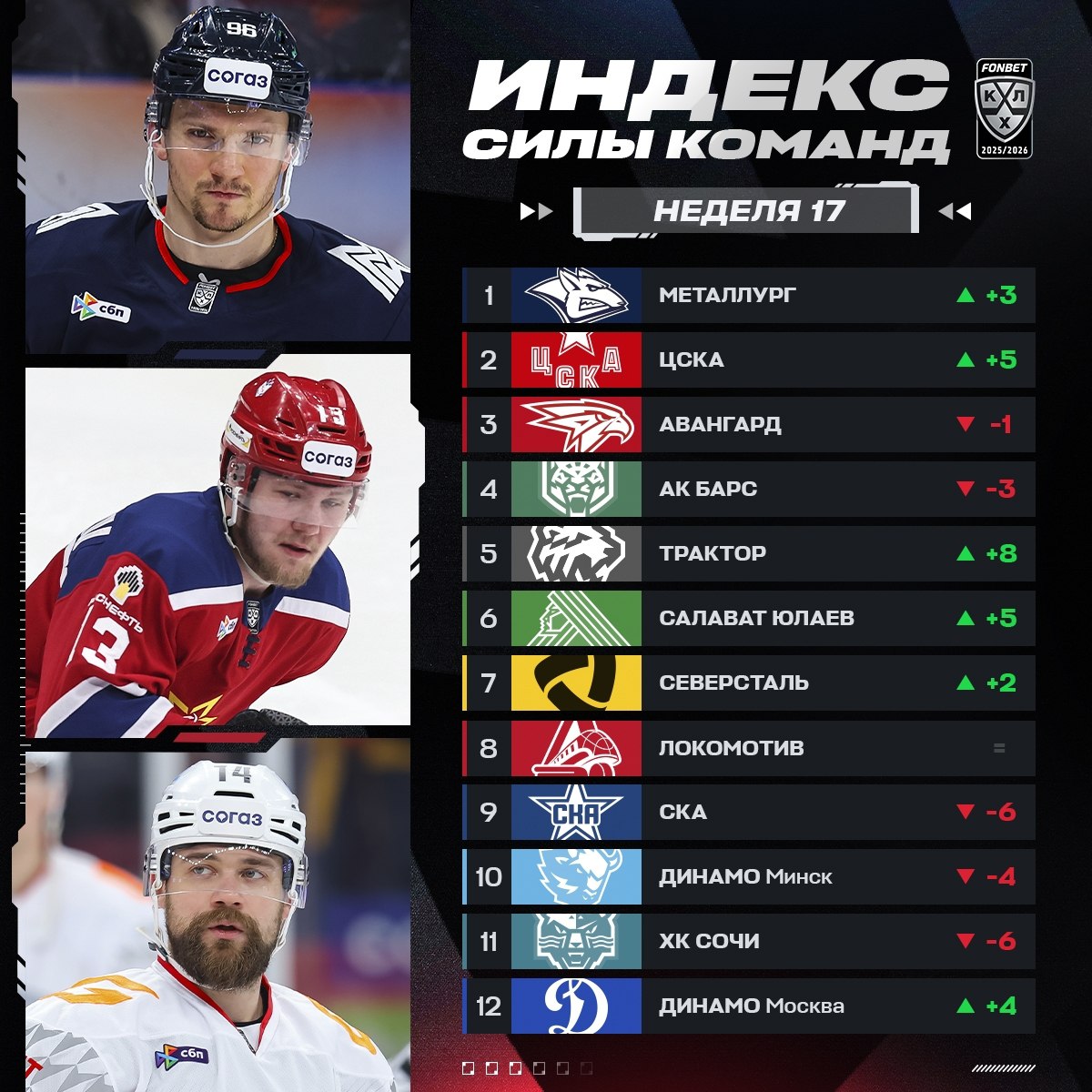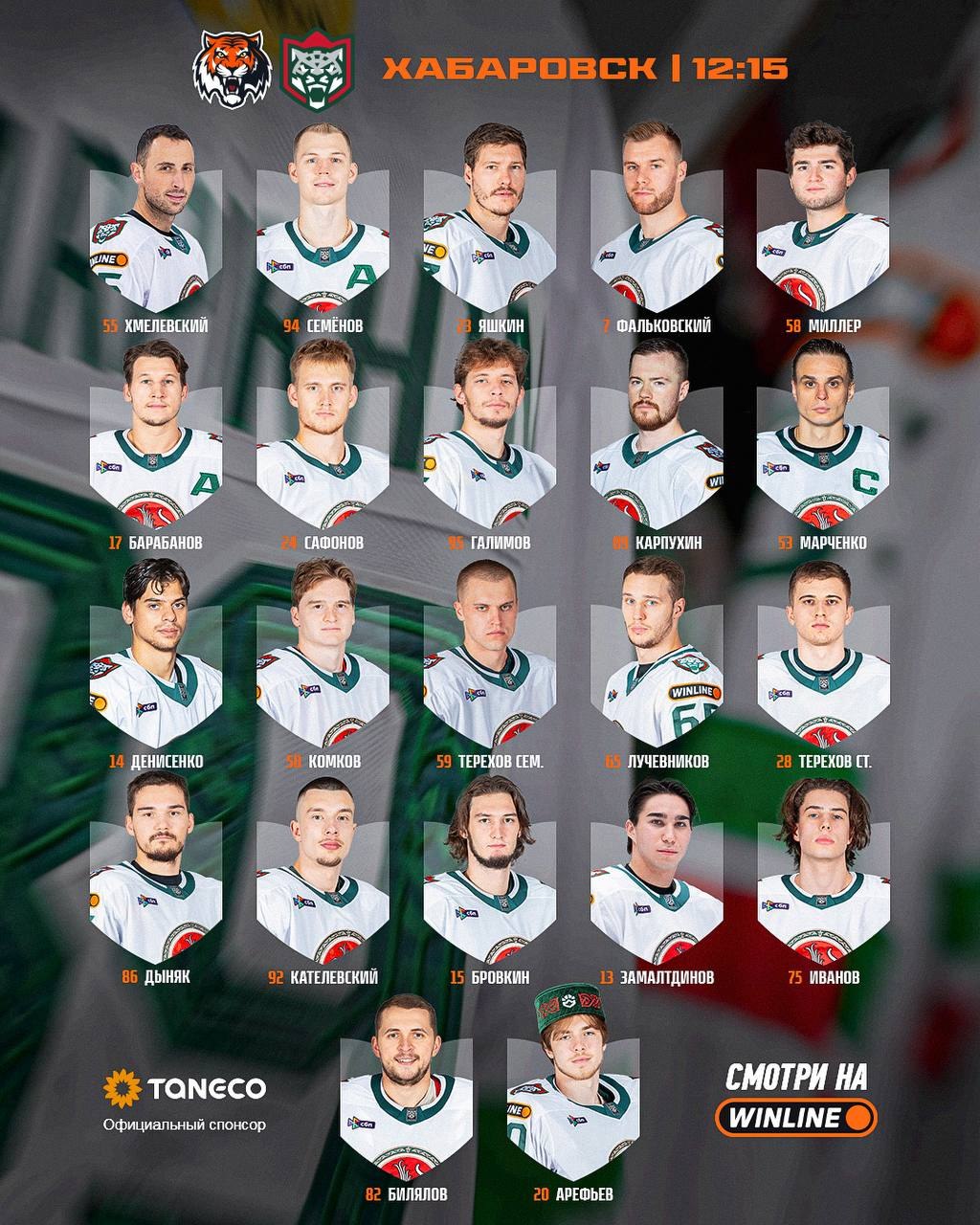 🏒 Нападающие: Владимир Алистров, Александр Барабанов, Брэндон Биро, Артур Бровкин, Артем Галимов, Григорий Денисенко, Никита Дыняк, Радэль Замалтдинов, Дмитрий Кателевский, Денис Комков, Алексей Пустозеров, Илья Сафонов, Кирилл Семенов, Семен Терехов, Александр Хмелевский, Дмитрий Яшкин.
