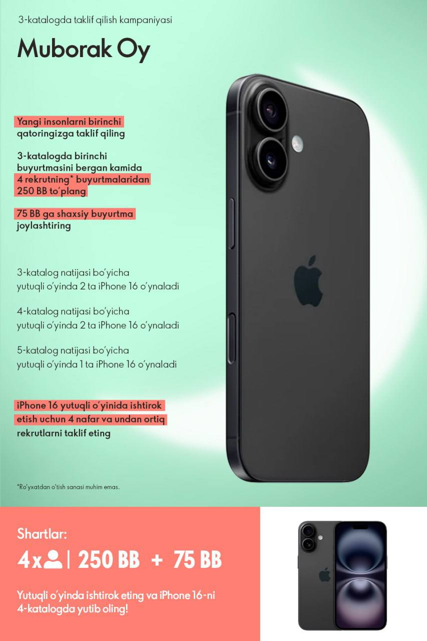 Kampaniya shartlarini bajaring va yutuqli o‘yinda qatnashing!