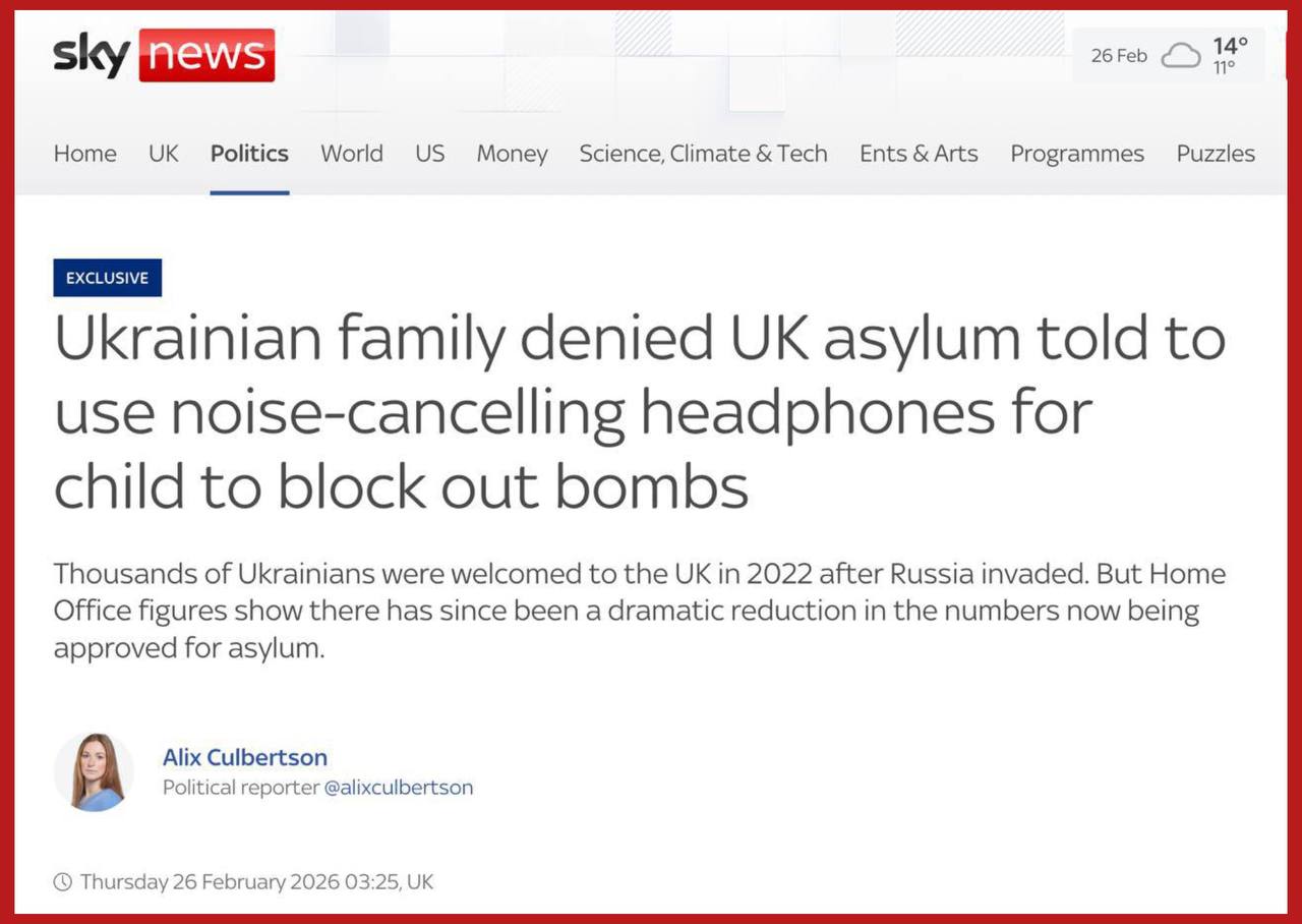 В Британии отказали в продлении убежища украинской семье, посоветовав ребенку с паническими атаками использовать шумоподавляющие наушники, чтобы не слышать бомб, - Sky News.