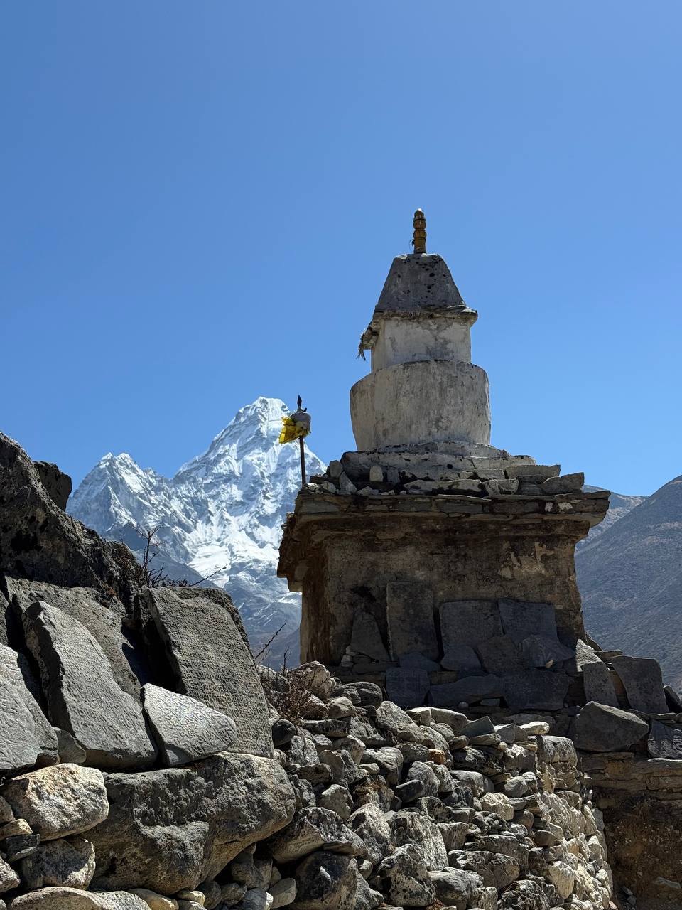 Сегодня наша группа «Эверест 26» из Намче-Базара отправилась в Тенгбоче. Это один из самых сложных дней на пути к Базовому лагерю Эвереста, так как сначала мы спускаемся на 500 метров к реке, а затем набираем 650 метров вверх.