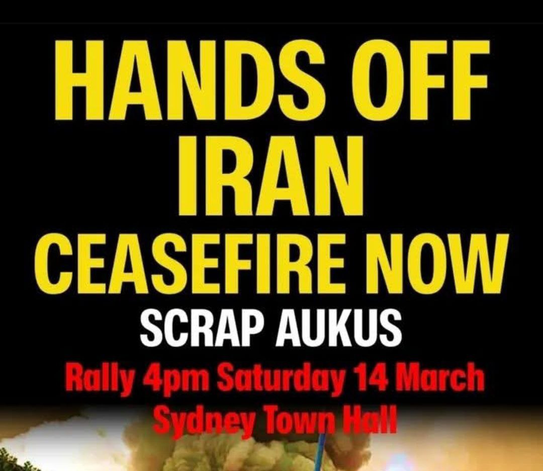 This us how today's rally in Sydney was billed but some of its organisers tried to demand people not show the Iranian flag, as Australian military was sent to the Persian Gulf to join in the USraeli war against Iran.