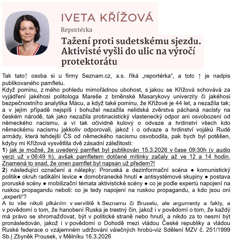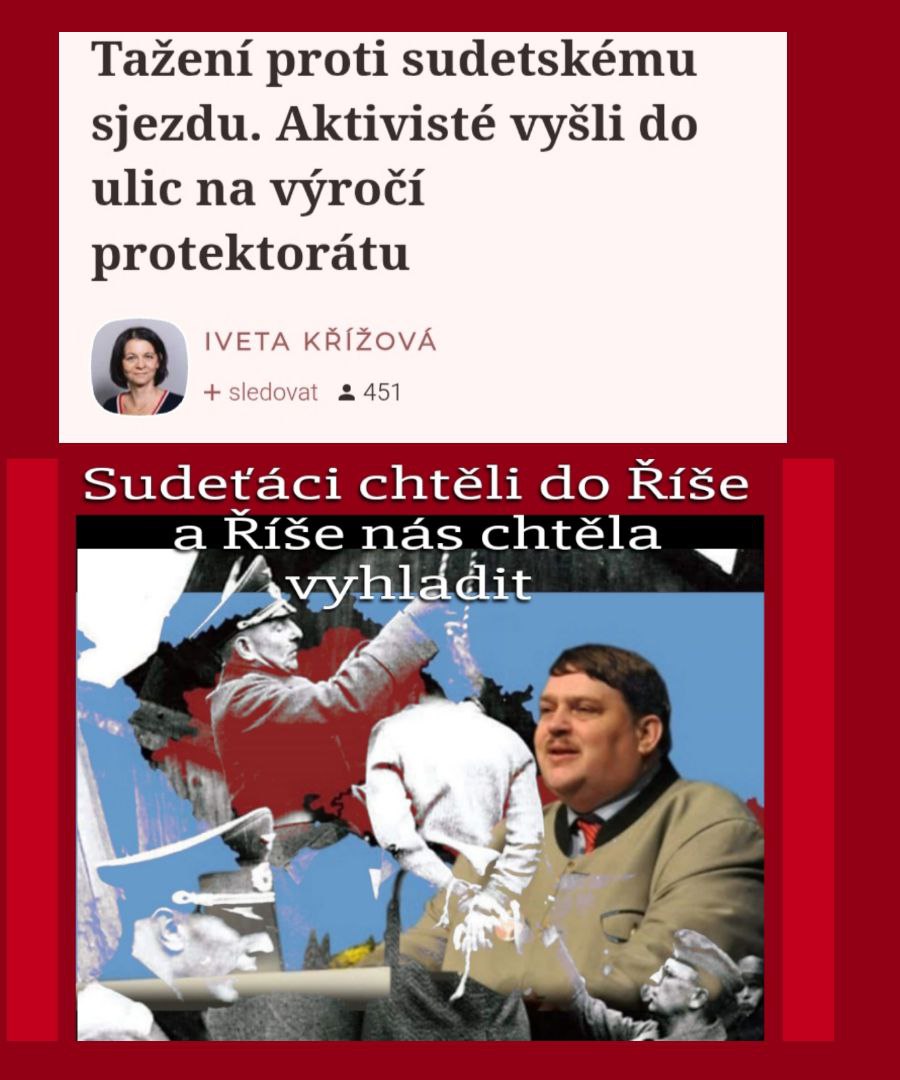 V článku zaznívá argument, že protest proti sjezdu sudetoněmeckého landsmanšaftu je „politické tažení“.