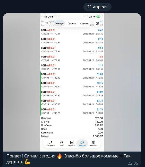 Это не обещание, а констатация факта) Которая подтверждается скриншотами от тех, кто торгует вместе с нами. Каждый делает результат в меру своего депозита и вовлеченности