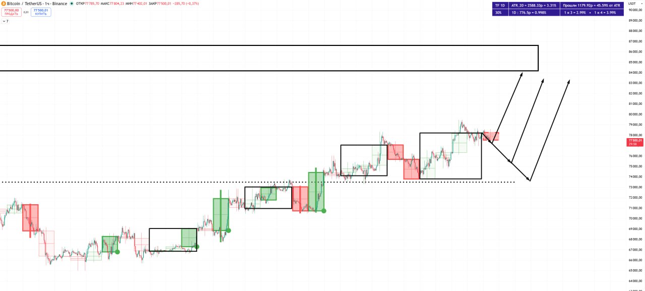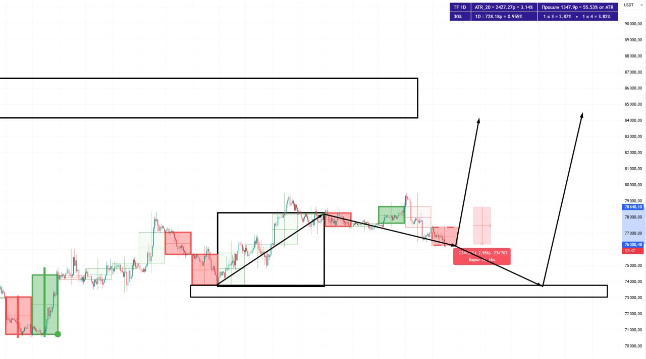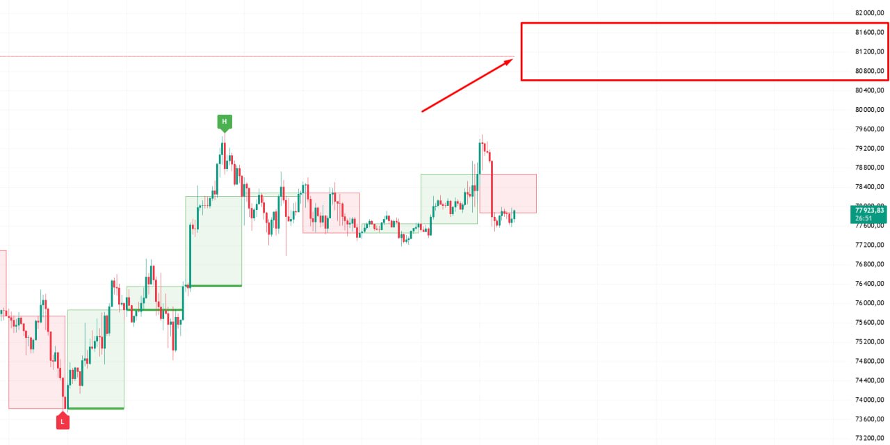 🚀 BTC движется к зоне 78500/80000$, там уже буду наблюдать за реакцией цены.