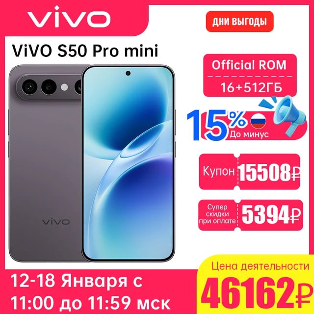 Смартфон Vivo S50 Pro mini 12/256ГБ и 16/512ГБ. Компактный дизайн с мощной производительностью для многозадачности. Большой объем оперативной и встроенной памяти для хранения данных. Яркий экран с высокой частотой обновления. Качественная система камер для съемки. Долгая работа от аккумулятора и быстрая зарядка. Элегантный корпус и надежная сборка. Подходит для пользователей ценящих удобный размер.