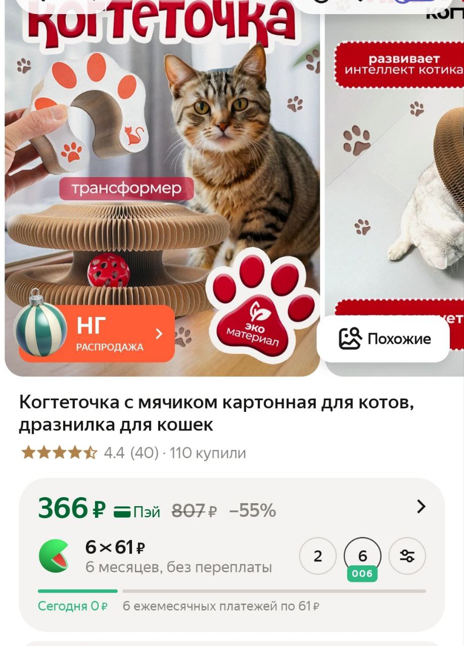 Когтеточка с мячиком картонная для котов, дразнилка для кошек
