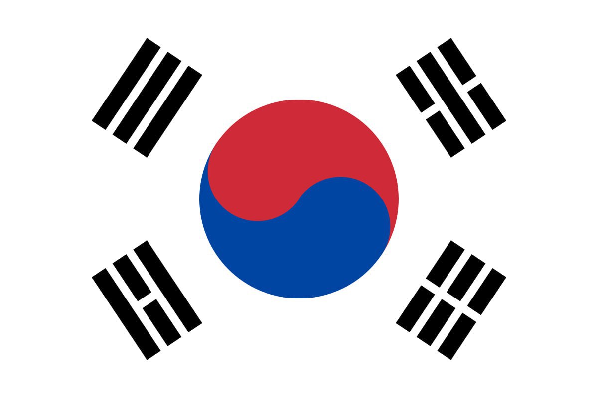 Южная Корея установила нынешнюю форму флага Тхэгыкки (태극기) в качестве своего национального флага после получения независимости от Японии 15 августа 1945 г.