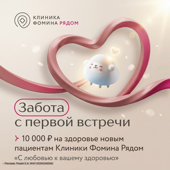 В преддверии 14 февраля Клиника Фомина. Рядом дарит 10 000 ₽ на здоровье — для вас или для человека, которого вы любите.