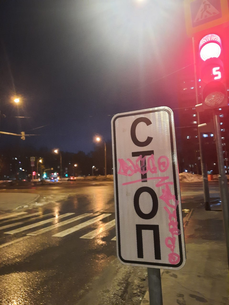 Московские дороги ответили нам, что передали обращение ответственным. Но пока здесь только поменяли горизонтальную табличку на вертикальную, а вандалы успели ее разрисовать.
