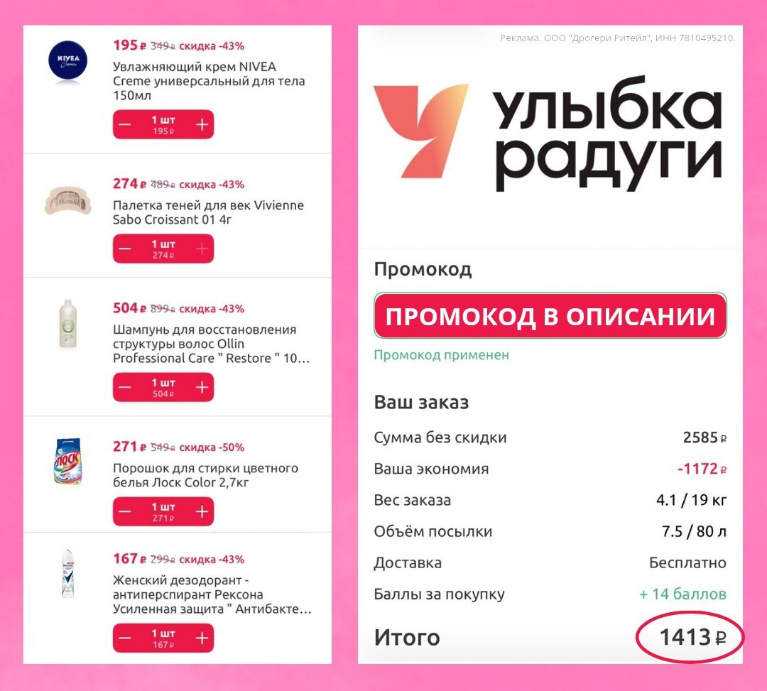 Доступно при покупке на сумму более 200 ₽ в течение 7 суток с момента регистрации