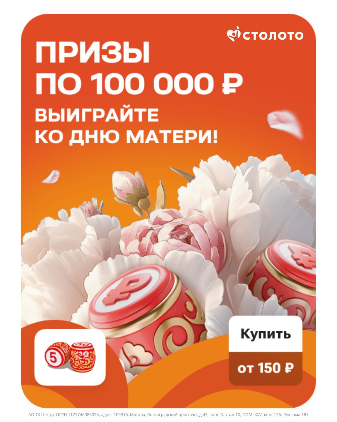 📌 Лотерея Русское Лото разыгрывает призы от 100 000 ₽ к празднику! Участвуйте,выигрывайте и радуйте близких подарками!