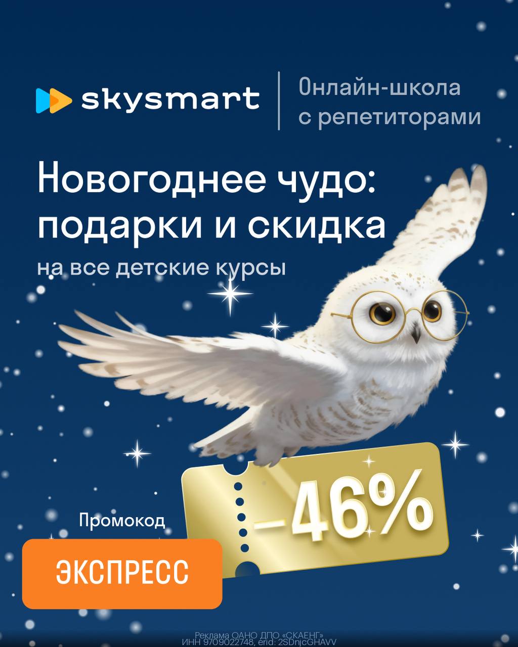 Скидка до 46% на онлайн-уроки с репетиторами в Skysmart 👩🏫