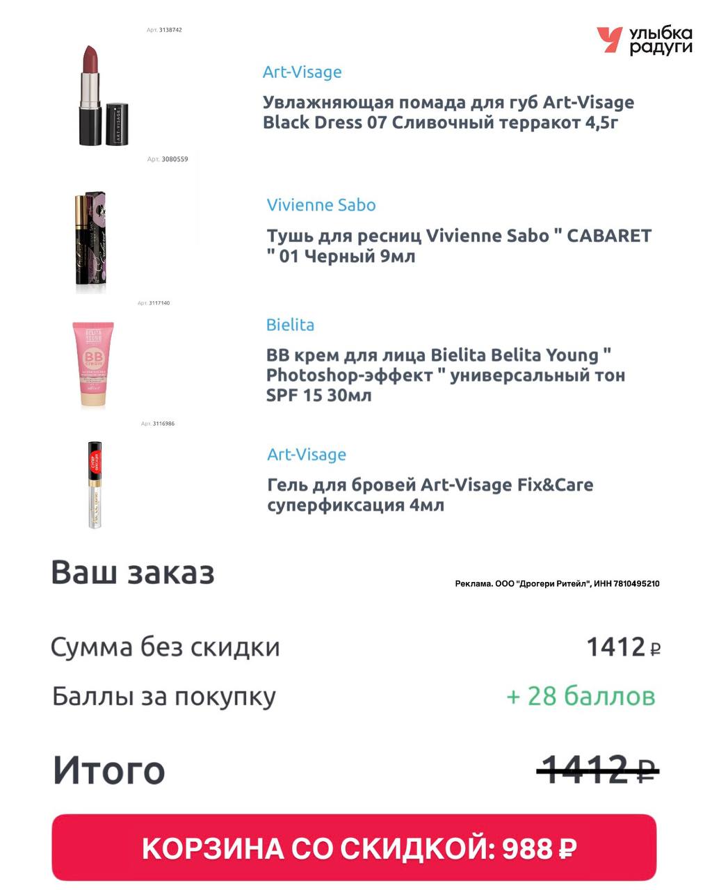 Все от тональной основы до геля для бровей покупаю в Улыбке радуги 😍