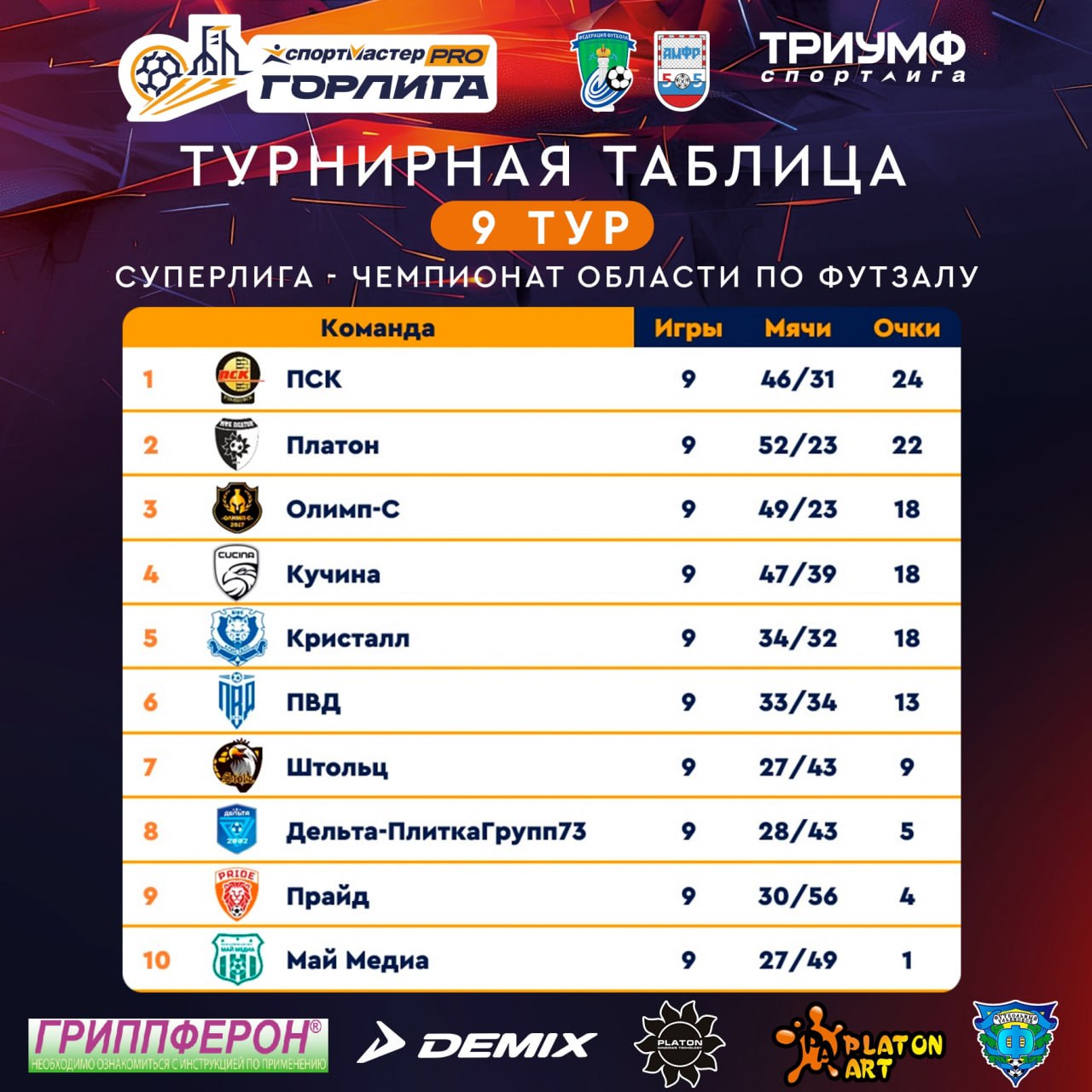 ▪️ Бомбардиры сумели сделать 23 дубля и 12 хет-триков. Лавры лучшего бомбардира с показателем 4 мяча в одной игре разделили между собой Рашад Пириев (Юная Гвардия) и Артём Владимиров из апатитского «Химика».