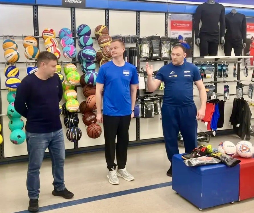 Участники посетили магазин "Спортмастер". Из первых уст они узнали о разнообразии товаров для занятий футболом, сервисах, которые помогают сделать тренировки и игры более эффективными и яркими, а также о специальной программе лояльности "Карта тренера", предоставляющей максимальные скидки, а Константин Маевский рассказал об истории совместной разработки футзального мяча Demix, который является официальным мяча общероссийских проектов АМФР и "Триумф Спортлиги".