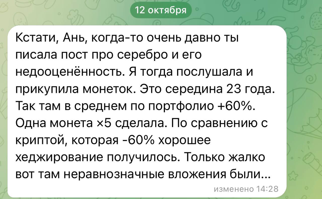 👀 Про неё я напишу чуть позже, сейчас же хочу обратить ваше внимание на другую резервную валюту - золото и, как ни странно, серебро.