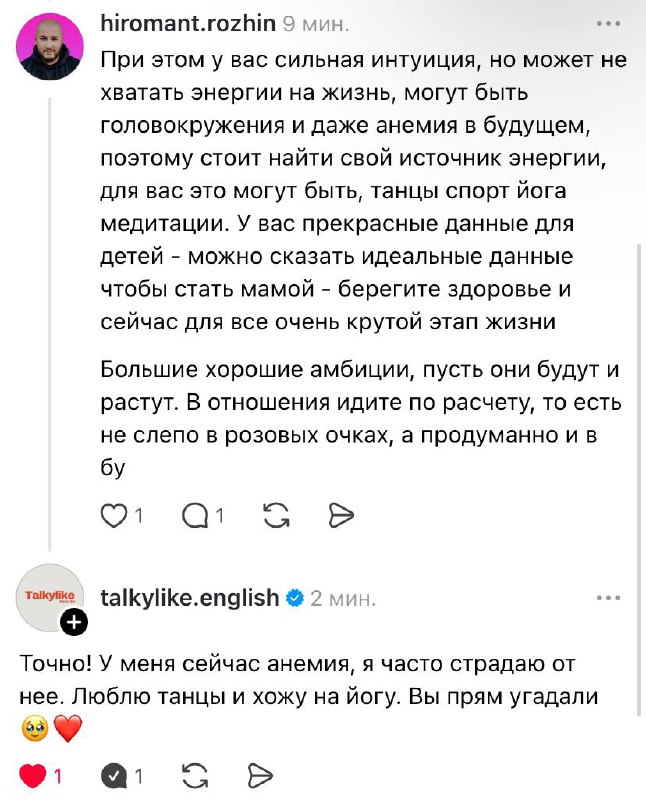 А я уже замужем второй раз😂 первый не подошёл по характеру. Второй идеально вклинился, пока терпит меня и мой характер. Работать работу не особо хочу, люблю свое хобби в виде нумерологии, которое приносит заработок на трусики и бусики ( так муж говорит) 😂😂😂 в целом сравнила наши матрицы, говорят, что жить будет совместно и долго, если я не буду трясти своими стальными 🥚😂