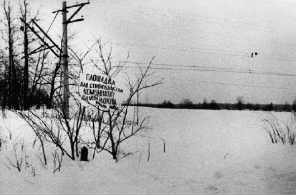 P.S. На фото табличка на месте будущего комбината «Химволокно», январь 1985 г.