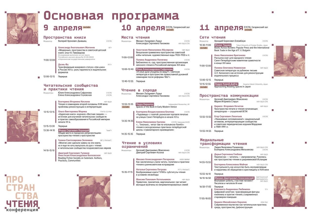 Ключевым спикером на секции «Медиальные трансформации чтения» выступит Михаил Дмитриевич Алексеевский — кандидат филологических наук, приглашенный преподаватель Высшей школы экономики и экс-руководитель Центра городской антропологии КБ «Стрелка». Выступление на "Пространствах" — своеобразный comeback, ведь Михаил некогда исследовал способы обращения с книгами в постсоветском пространстве: как люди собирают, хранят и организуют свои домашние библиотеки и что эти практики говорят о культуре чтения и повседневной жизни.