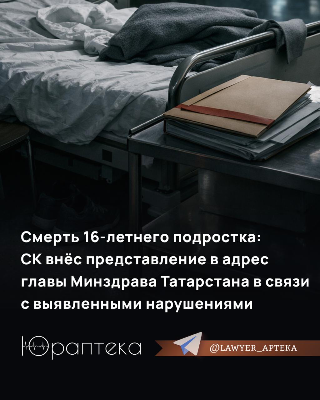 🛫 Смерть 16-летнего подростка: СК внес представление в адрес главы Минздрава Татарстана в связи с выявленными нарушениями